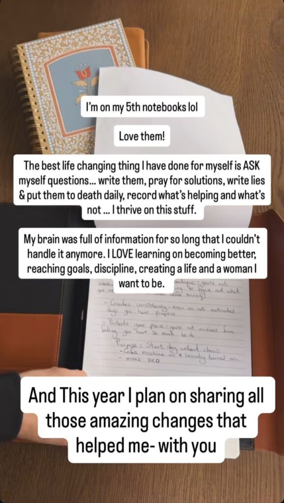 In response, my brain remembered an Instagram story from someone I followed. She talked about keeping a journal where you ask yourself questions and allow the Holy Spirit to guide your thoughts and provide answers.